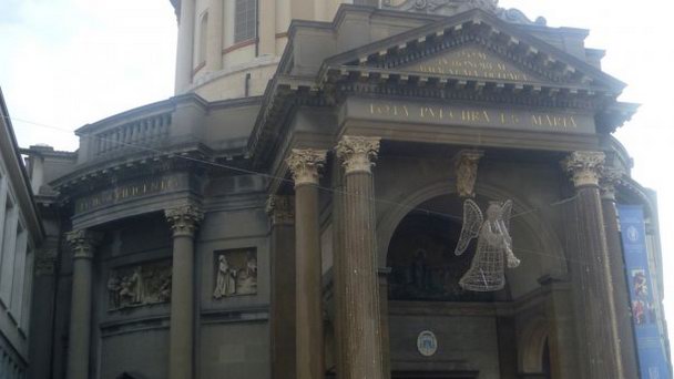 Церковь Непорочной Девы Марии (Chiesa di Santa Maria Immacolata delle Grazie) громоздким серым комплексом расположилась в самом центре Нижнего Города Бергамо. В XV веке на этом месте существовал великолепный монастырь Святого Бернардина Сиенского: четыре внутренних дворика были окружены садами и лесами, в церкви Святой Девы Марии стены и своды были расписаны фресками.