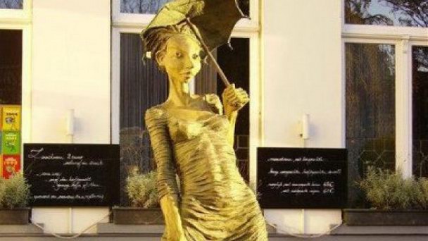 Памятник девушке с зонтом - очередная вариация на тему увековечения прекрасного пола в бронзе на одной из улиц бельгийского города Брюгге. Оригинальная и очень гротескная скульптура девушки производит впечатление этакой современной модницы, позирующей невидимому людскому глазу фотографу.