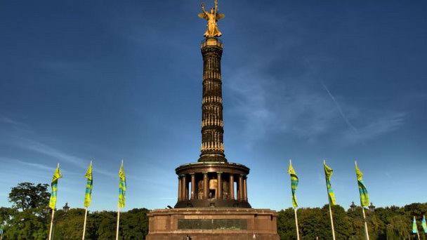 Колона победы в Берлине, также известная как Триумфальная колонна, была построена 2 сентября 1873 года по указу Вильгельма I в честь трех знаменательных побед: победа в Датской войне 1864 года, победа в Австро-Прусской войне 1866 года и победа в Франко-Прусской войне 1870-1871 годов. Сооружение высотой 66,89 метров находится на площади Большая Звезда. На нижнем этаже колонны расположен небольшой музей истории, а на верхнем, на высоте в 48 метров, обустроена смотровая площадка, открывающая прекрасный вид на панораму Берлина.