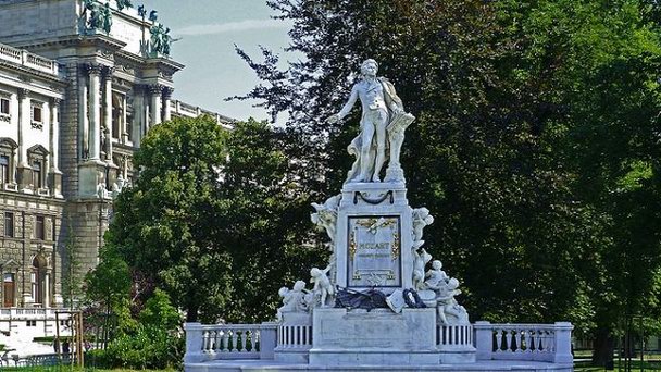Один из наиболее известных памятников Моцарту расположен в бывшем Императорском саду Бурггартене,в Вене. Изначально, он был создан в 1896 году по проекту архитектора В.Тильгнера и располагался на площади Албертинаплац. Но в 1953 году его пришлось перенести в Бурггартен.