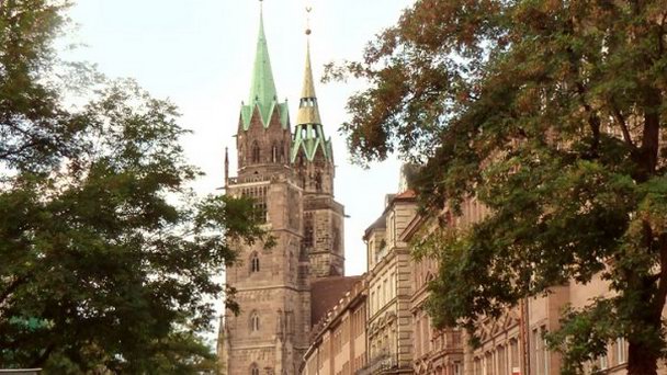 Река Пенгиц разделяет город на две части. Одна из них называется в честь главного готического собора этого района - Святого Зебальда (нем.St-Sebalduskirche), другая - честь собора Святого Лоренца, к которому мы направимся по этой красивой средневековой улице. На фото - церковь Святого Зебальда