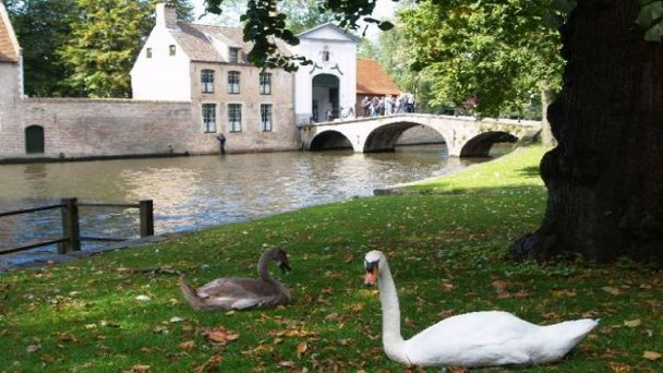 Озеро любви расположено в самом сердце Брюгге, в парке Миннуотер. Это не только красивое озеро, но и символ средневекового города, место, где обитают белоснежные лебеди. Примечательно, что все лебеди в городе имеют метку на клюве с буквой "Б" и датой рождения, являясь собственностью города.