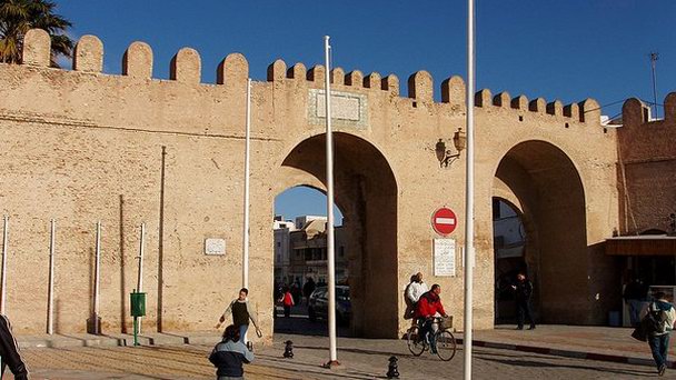 Из нового города в старый, медину, можно попасть через большие ворота Баб эш-Шуада. Справа от них находится гробница (зауйя) Сиди эль-Гарьяни. А неподалеку – жизненноважный источник Кайруана - колодец Бир Барута.