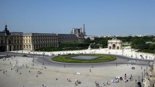 Площадь Карусель находится между двумя большими боковыми крыльями Лувра. В XVII в. здесь был выстроен манеж (по-французски "Карусель"), откуда и происходит название площади.