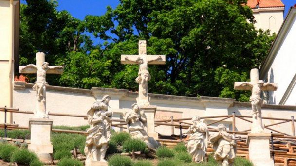 Скульптура Голгофское распятие располагается на крутом скалистом склоне посреди Райского сада в черте города Зноймо. Монумент представляет собой три отдельно стоящих креста, приподнятых на пьедесталах, вокруг крестов размещены скульптуры людей. Согласно библейской истории именно три креста было на Голгофском холме, на среднем был распят Спаситель Христос. Скульптура располагается в Райском саде, существовавшем в Зноймо еще в средние века. Здесь выращиваются лучшие сорта винограда, пригодные для климатических условий данного региона. К скульптуре можно попасть, пройдя от площади Св. Николая через Каролининские ворота.