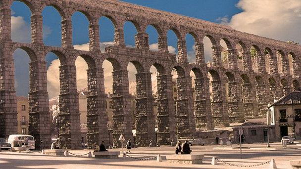 Основной достопримечательностью Сеговии является Римский акведук, построенный в II-I вв. до н. э. Он являлся частью древнего водопровода. Длина акведука составляет 728 м, высота 28 м. Удивительно, что это сооружение состоит из гранитных блоков, ничем не скрепленных друг с другом. Каменный арочный пролет расположен в центральной части Сеговии и является своеобразной триумфальной аркой города.