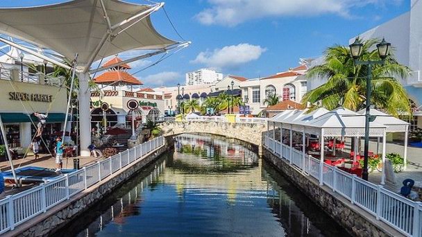 Торговый центр La Isla - это своего рода небольшой город с водными каналами и мостиками.