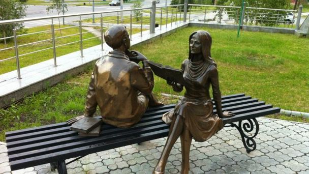 Саму скульптуру изготовили в городе Озерск, что в Челябинской области. Многие посетители «Интеллект-Центра» обожают этот памятник – возле него можно не только сфотографироваться, но и отдохнуть около влюбленной пары.