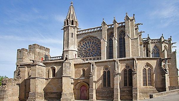 Собор святых Назария и Цельсия был построен на фундаменте неизвестного здания (по некоторым источникам, бывшей церкви). Работы начались в 1096 году по благословению папы Урбана II, закончились в середине 14 века, в 1330-м году.