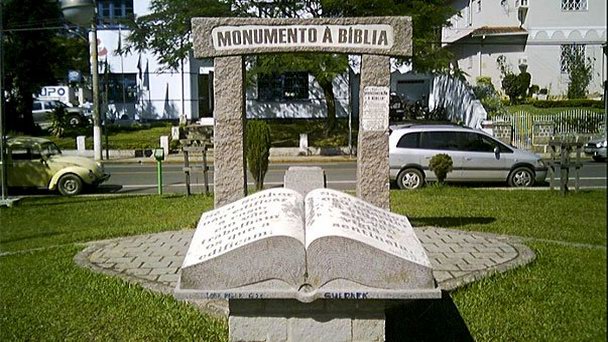Памятник Библии создан в 1984 году по инициативе местной евангелической организации. В том же году он был установлен на площади имени Витора Брито, окруженной деревьями и зелёными насаждениями.