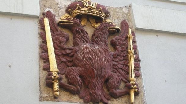 Дом "У красного орла" в Чехии соорудили в пятнадцатом веке. Он несколько раз менял внешний вид. Так, в 1700 году дом после реконструкции приобрел черты ренессансного стиля. Сейчас его фасад выполнен в стиле рококо. Этот вид дом приобрел в конце восемнадцатого века. На его фасаде располагается большой двуглавый орел. В своих когтях орел крепко держит большой меч и державу. Над головой у двуглавого орла красуется императорская корона.