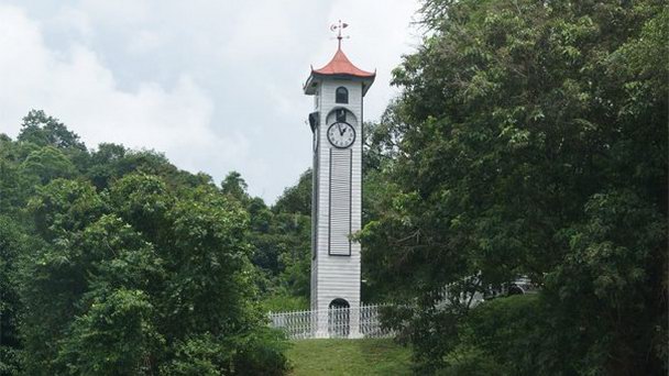 Изначально башня с часами была построена из дерева мирабау. Ее строительство было профинансировано друзьями Аткинсона, и, скорее всего, построена ремесленниками с военно-морского флота. Когда в 1905 году часы были построены, бой их курантов был слышен по всему городу. Часы были спроектированы Уильямом Поттсом из Великобритании.