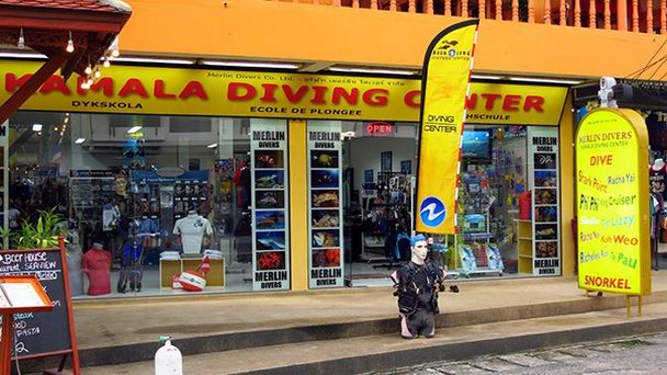 Дайвинг-центр «Мерлин Дайверс» находится в посёлке Камала всего в 50 метрах от местного пляжа. По мнению самих туристов, это лучший в Таиланде дайвинг-центр. Здесь есть всё необходимое снаряжение, учебные материалы на разных языках и прекрасные инструкторы. Сервис здесь тоже на высоте – вас доставят в центр прямо из гостиницы и после занятий дайвингом опять вернут в гостиницу.