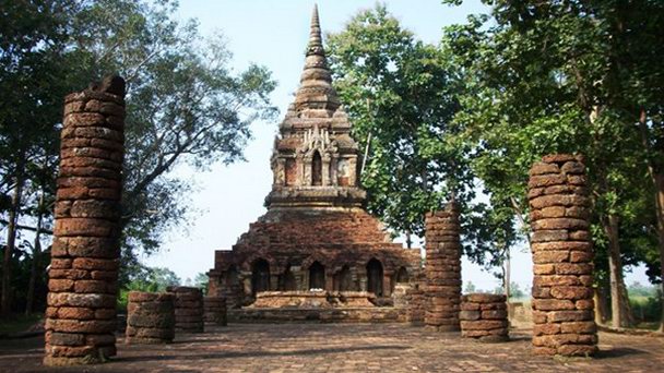 Храм украшают разнообразные декоративные узоры на штукатурке. Главная пагода была построена в 1340 году высотой почти 13 метров. Купол храма выполнен из чистого золота. Некоторые храмовые постройки были восстановлены тайским департаментом искусств.