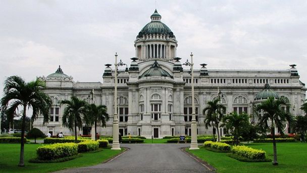 Тронный зал Ananda Samakhom является бывшим залом для приёмов дворца Dusit. Он был построен в 1915 году. Зал представляет собой огромное двухэтажное строение с одним большим центральным куполом, который окружён шестью малыми куполами. Он построен скульпторами Марио Томаньо и Аннибале Риготти в смешении двух стилей - стиля итальянского Возрождения и неоклассического стиля. Зал построен из каррарского мрамора. Внутри него стены и купола покрыты росписями Галилео Кини и Карла Ригули, изображающими историю династии Чакри.
