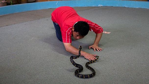 Кульминацией шоу становится демонстрация королевской кобры - самой крупной ядовитой змеи в мире.