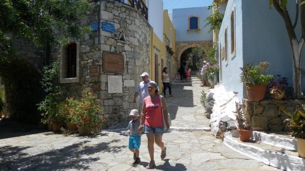 Ну во первых здесь вам предложат самостоятельно испечь хлеб, слепитьь из глины какую нибудь безделушку, научат делать критские чётки, покажут быт греческой деревни в старые времена, ну и конечно же накормят за ваш счёт греческой кухней(надо сказать блюда действительно очень вкусные ). Деревенька находится в горах неподалёку от Ираклиона, а так как она поддерживается спросом, то здания здесь выглядят сногсшибательно, здесь всё очень аккуратненько и красочно.Здесь же находится мини-отель, при котором обалденный бассейн,выполненный в античном стиле.