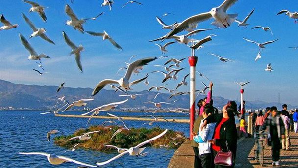 На юго-западе города Куньмин у подножья гор расположилось пресноводное озеро Дяньчи. Его площадь составляет чуть менее трёхсот квадратных километров, при этом в Дяньчи впадает двадцать рек и родников.