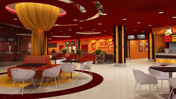 В кинотеатре расположены кофейня, ресторан японской кухни, пивной ресторан, диджей-кафе. Также в фойе находится игровой центр для детей "Луноход", оборудованный современными симуляторами.