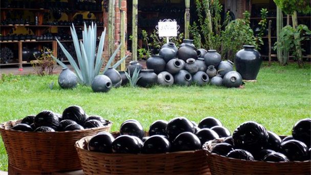 Этот керамический салон назван в честь доны Розы, творческой личности, которая смогла по-новому раскрыть возможности специфической, так называемой "черной" керамики - традиционного местного ремесла. Мастерство изготовления черной керамики шлифовалось веками. Но только дона Роза смогла изменить технологию, в результате чего привычный материал получил совершенно новое воплощение, которое стало значительно популярнее своего предшественника. Основное отличие черной керамики студии доны Розы - блестящая поверхность.
