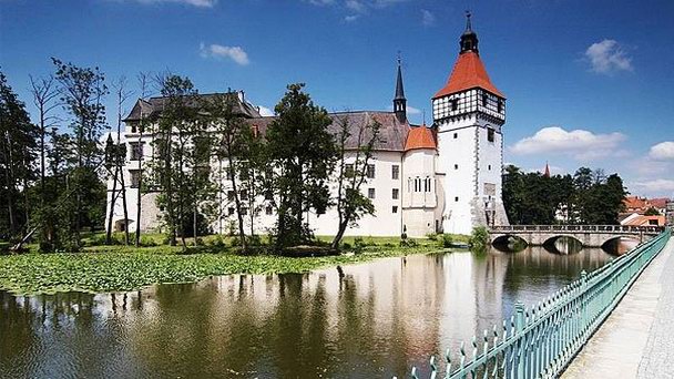 Замок Блатна расположен в одноименном городке в 95 километрах к югу от Праги. Его еще называют Водный замок, потому что здание замка окружено настолько большим рвом, что последний больше напоминает озеро. Это объясняется тем, что при строительстве замка были объединены несколько близлежащих прудов, а само здание было построено на участке скальных пород, образующих своеобразный островок.
