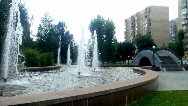 Если двигаться со стороны Киевского вокзала к Кутузовскому проспекту по Украинскому бульвару, то первый фонтан, который встретится на пути - "Столбы". Фонтан представляет собой бассейн неправильной формы, из воды которого строго вверх бьет ряд мощных одиночных струй.