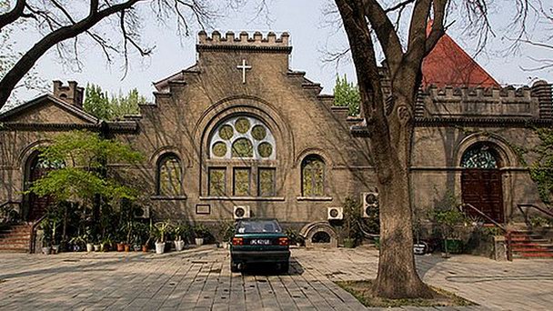 Церковь Asbruy или, как она ещё называется, церковь Chongwenmen является первой в северном Китае американской христианской методистской церковью. Она была построена в 1870 году. Первоначально церковь была рассчитана на 400-500 человек. В 1882 году церковь была реконструирована, но в 1900 году во время восстания она была сожжена. И лишь в 1904 году церковь Asbruy была заново отстроена на деньги китайского правительства. Именно это здание церкви, значительно расширенное и рассчитанное уже на 2000 прихожан, мы можем наблюдать сегодня. Его архитектурный стиль вобрал в себя смесь разных культур.