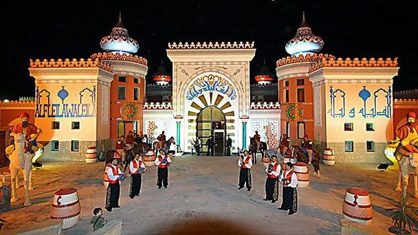 Развлекательное шоу «Тысяча и одна ночь» - яркое завораживающее зрелище с участием акробатов, фокусников и народных танцоров, которое проходит в таинственном замке. Комплекс выполнен в восточно-сказочном стиле, в обрамлении «танцующих» фонтанов с красивой подсветкой.