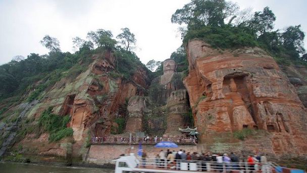 Статуя Будды в Лэшане — воплощение мироздания. Гигантский, 70-метровый Будда сидит лицом к водным просторам, положив руки на колени.Просветлённый «одет» в каменную тунику, складки которой отводят дождевые воды, препятствуя растрескиванию горной породы.