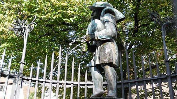 Фонтан Дудельсакпфайфербрюннен представляет собой небольшую скульптуру, которая изображает мужчину, играющего на волынке. Собственно, название фонтана так и переводится - "Игрок на волынке". Современная скульптура появилась сравнительно недавно, в 1979 году. Оригинальная композиция относится к концу XIX века, во время Второй мировой войны она была сильно повреждена.