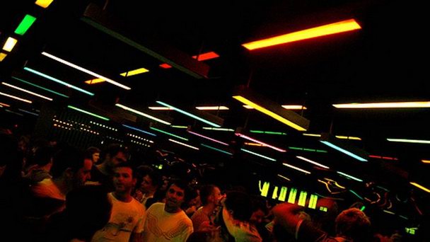 За диджейский пультом располагается VIP-зона и диодный анализатор диапазона звуковых частот, воплощающий гигантский эквалайзер.