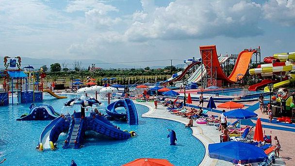 Здесь расположены бассейны, различные водные горки, наземные аттракционы. Любителей экстрима порадуют аттракционы "Камикадзе", "Сумасшедшая горка", "Черная дыра" и другие. Предусмотрены развлечения и для малышей: здесь есть детская площадка, мини-бассейн, мини-автомобили, на которых малышам интересно будет покататься. Также на территории аквапарка имеются бары, ресторан, магазины.