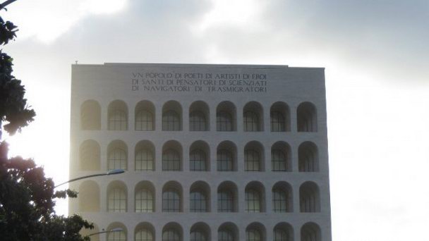 На самом-то деле здание называется Дворец итальянской цивилизации (или же Дворец цивилизации и труда), но острые на язык люди зовут его в лучшем случае Квадратным Колизеем, а в худшем – грюэрским сыром. По понятным причинам. С Колизеем Флавиев его роднит грандиозный размер и бесчисленное множество окон. Они же создают сходство с куском сыра, испещренного дырками.