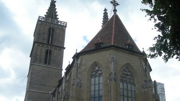 Собор Святого Якоба – главный собор Ротенбурга на Таубере – города-музея. Протестантская церковь XIV века была широко известна еще в Средневековье. Славились церковные алтари, особенно знаменитый "Алтарь Святой Крови". Название данного алтаря напрямую указывает на известную церковную реликвию. Этой реликвией выступают капли крови Христа. Священная реликвия представляла собой обычную склянку, в которой находились 3 капли крови, якобы самого Иисуса Христа. История реликвии уходит в раннее средневековье, когда она попала в Ротенбург в связи с окончанием Крестовых походов. Появление такой реликвии сделало в скором времени собор местом поклонения большого количества паломников.