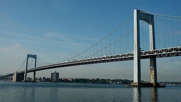 Подвесной мост Throgs Neck был открыт в 1961 году. Он пересекает Ист-Ривер и соединяет два района Нью-Йорка - Куинс и Бронкс.