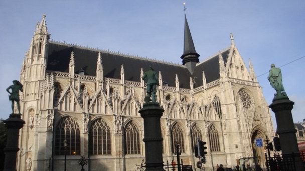 Особенно знаменито внутренне убранство храма, в частности, огромные витражи, которыми украшены окна. Изнутри стены храма расписаны гербами самых видных семейств Брюсселя.