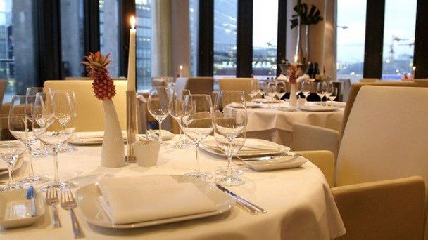 Ресторан расположен на одной из наиболее красивых улиц Берлина и поражает воображение элегантным дизайном: светлая обивка стульев в сочетании с белоснежными скатертями, салфетками и столовыми приборами становится еще более изысканной по вечерам, когда на столах зажигаются тонкие белые свечи.