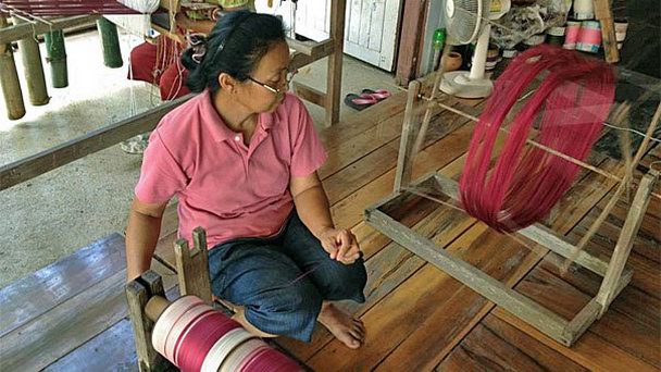 Ткацко-прядильная фабрика Сантри занимается производством изделий из хлопка в традиционной тайской технике Тин Чок. Работницы создают замечательные платья, рубашки, ковры и накидки.