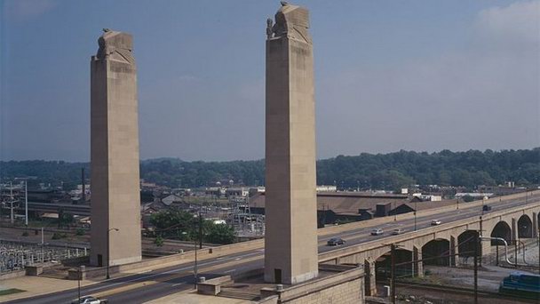 Его милитаристские декоративные элементы наводят на мысли о военных, и не зря. Мост также известен как Мемориальный мост солдат и моряков Стейт-стрит, и посвящен всем пенсильванцам, когда-либо служившим в вооруженных силах. На краеугольных камнях каждой арки изображено вооружение и военная техника времен Первой мировой войны. Вход на мост со стороны парка Капитолия венчают два высоких пилона с изображениями орлов.