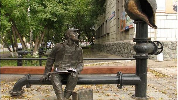 Скульптор - Рустам Исмагилов. У памятника есть небольшая легенда о присутствующей в нем морской раковине. Водопроводчик — человек простой, небогатый. Всю жизнь работал и ни разу не бывал на море. Но за время своей службы он обеспечил пермяков целым океаном воды... А вечером присядет Петрович (именно так назвал своего персонажа скульптор) после тяжелого рабочего дня и, вслушиваясь в негромкий шум водосточных труб, оказывается в далеких странах, где он сидит на пустом берегу и слушает тихий шелест набегающих на берег волн.