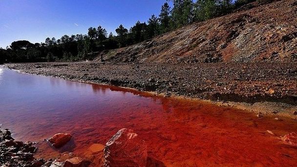 В конце прошлого века в районе реки Рио Тинто были завершены работы по добыче полезных ископаемых, в том числе таких как золото, серебро, медь. Но все это время металлы попадали в воду и способствовали зарождению множеству окисляющих железо и серу бактерий. Их жизнедеятельность повлияла на уникальную, буро-красную окраску воды.