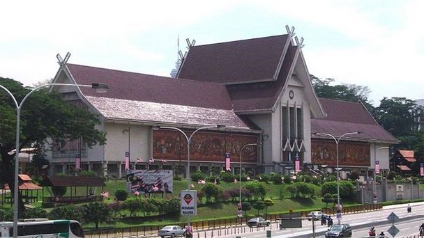 Это настоящий храм искусств. Стены главного музея Малайзии украшены великолепными мозаичными панно, которые передают сюжеты из истории. Внешне музей выполнен как традиционное жилище крестьян. Оно стоит на сваях, а его фасад украшен яркими фресками больших размеров.