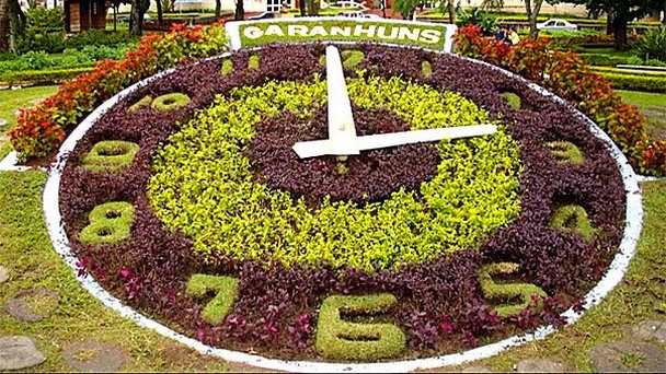 Это одна из пяти аналогичных достопримечательностей Бразилии и, надо сказать, не самая удачная. Здесь не практикуется популярная в европейских странах методика постоянного обновления видов растений по времени цветения. Тем не менее, трехметровый двухуровневый циферблат с пропорционально немалыми стрелками впечатляет. Общий фон внутреннего круга (собственно циферблата) составляют, в основном, почвопокровные растения. Цифры высажены из цветущих растений средней высоты с более светлой зеленью. На внешнем круге, как правило, высаживаются пышноцветущие растения, что придает часам нарядный вид.