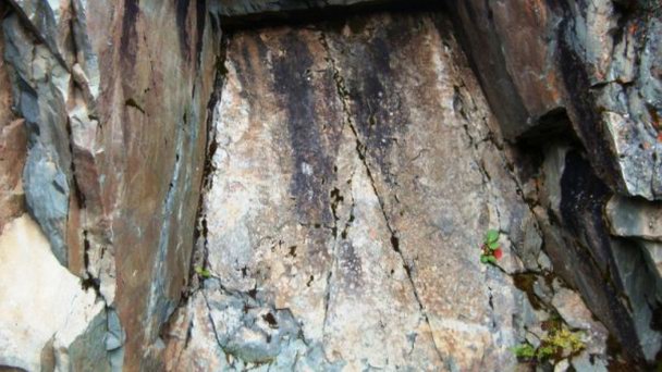 В нижней части склона каменная выемка напоминает большие ворота. Самое удивительное, что через все «ворота» по диагонали проходит трещина, схожая со стыком дверных створок.