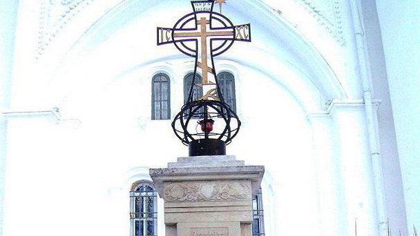 Крест расположен на белокаменном постаменте, каждый фрагмент кованной конструкции является символом. Шар символизирует планетарное значение этого события. Буква "В" (веди) исполненная из золота, с расположенным после нее знаком тысячи – церковно-славянское значение памятного года. Знаком рождения Христа является восьмиконечная Вифлеемская Звезда. А сам Крест символизирует жертвенность человека.