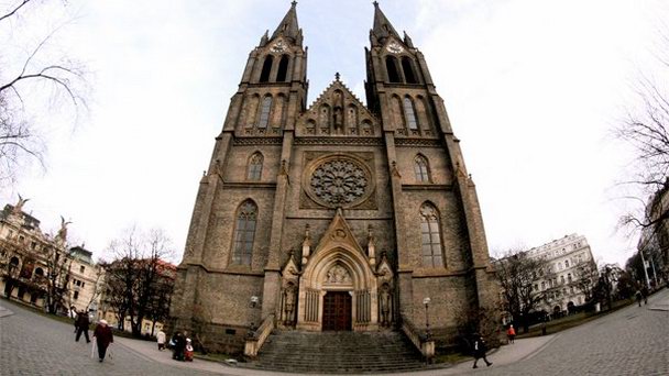 Костел святой Людмилы представляет собой неоготический кирпичный собор с двумя 60-метровыми башнями, который был построен в 1893 году архитектором Йозефом Моцкером. Над украшениями храма трудились известные художники того времени. По эскизу Турека был сделан главный алтарь храма, а по эскизу Мыслбека – статуи Христа, святых Вацлава и Людмилы на фасаде.