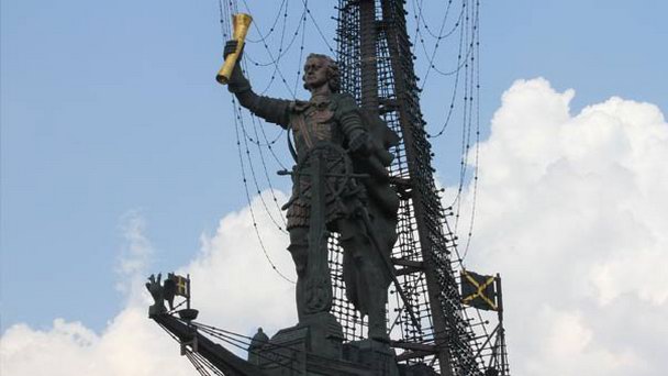 Московский памятник Петру Первому работы Зураба Церетели стоит, вернее, возвышается на берегу Москвы-реки напротив храма Христу Спасителю. Он был установлен на насыпном острове у разделения Москвы-реки и Водоотводного канала в 1997 году по заказу Правительства Москвы в честь 300-летия российского флота. Это один из самых высоких памятников мира - он возвышается над землей почти на 100 метров.