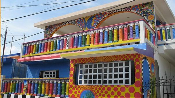 Изначально дом был белого цвета, а затем был расписан яркими красками.