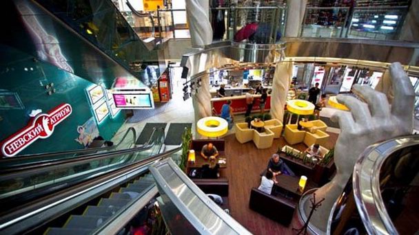 Торговый центр "Невский Атриум" расположен на пересечении улицы Марата и Невского проспекта, а выход из станции метро «Маяковская» - это и есть вестибюль в здании комплекса. Попадая внутрь атриума комплекса, сразу замечаешь необычное освещение и стеклянный купол, что создают дневной и приятный свет, не раздражающий глаз. Передвижение по этажам организована двумя масштабными панорамными лифтами и эскалаторами. В самом центре комплекса захватывает внимание и дух великолепная скульптурная композиция «Рука Давида». С ней связан миф о том, что прикоснувшийся к руке обретет удачу в жизни. Также, обратите внимание на необычный фонтан там же, в центре комплекса. Вашему вниманию представлены такие магазины одежды, обуви и аксессуаров, как Levi's, Esprit, JS Casual, Guess, Karen Millen, Gerry Weber, Timberland, Naf Naf, Etam, Calvin Klein Jeans и многие другие популярные бренды. Среди магазинов парфюмерии и косметики в комплексе достаточно большой сетевой магазин "Рив Гош". В зоне фудкорта Вы найдете рестораны и кафе "Месье Патиcсье", "Пицца Базилик" и ресторан "Невский".