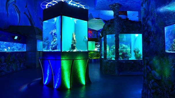 В затемненных коридорах размещены подсвеченные аквариумы, высокие потолки украшены картинами морской жизни, изображения на полу движутся, кажется, вы пробираетесь сквозь толщу воды. Успокаивающий шум прибоя и какие-то таинственные звуки из глубины только усиливают эти ощущения. Вы увидите почти 350 видов рыб, чудесные кораллы, которые не просто украшают пространство – они живые, растут и развиваются, как в естественных условиях. Вокруг них стайками порхают рыбки каких-то совершенно невероятных расцветок. У аквариума с большой песчаной акулой всегда многолюдно. Двухметровая хищница, конечно, опасна для человека, но здесь вызывает только восторг. А еще вы увидите барракуд, скатов, креветок, медуз, черепах. Короче говоря, океанариум раскроет вам тайны жизни моря.